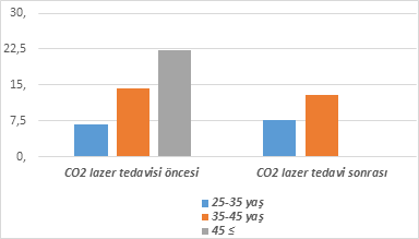 Bu tədqiqatda məqsəd genital reyuvenasiya (cavanlaşdırma) istəyi ilə müraciət edən qadınların dermoqrafik xüsusiyyətlərini müəyyənləşdirmək, tətbiq olunan müalicələrin nəticələrini öyrənmək və pasiyent məmnuniyyətini qiymətləndirmək olmuşdur. CO₂ lazer uşaqlıq yolu divarlarında kollagen sintezini və toxuma regenerasiyasını stimullaşdıraraq toxuma sağlamlığını yaxşılaşdırır [6, 7]. Bu da vaginal atrofiya və elastikliyin əhəmiyyətli dərəcədə yaxşılaşmasına və aradan qaldırılmasına səbəb olur.
